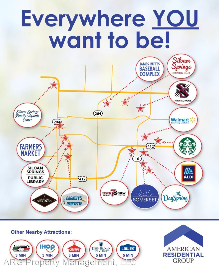 *Preleasing* BRAND NEW Four Bedroom | Two Bath Home in Somerset - *Pre-Leasing* This home will become available to tour and move-in on October 10th! Come check out this beautiful BRAND NEW home in Siloam Springs, AR! Enjoy luxury vinyl flooring throughout, a fully equipped kitchen, and a spacious front porch! Your master suite has a private bath and a spacious walk-in closet. This is a split floorplan with the remaining three bedrooms on the opposite side of the house, which also have nicely sized closets and share second bath. Washer and dryer connections are in the laundry room, and when family and friends come over, you can close the door and make the mess disappear, for while! We are PET FRIENDLY!!! Ask us about the Security Deposit alternative. Tour this floorplan here: https://my.matterport.com/show/?m=andeJRKH3J8&nt=1 Copy this link to your browser to schedule a tour or join the waitlist. https://secure.rently.com/properties/4299358?source=marketing If you would like to view our qualifications or would like to apply for this home, you may do so by visiting our website at www.liveARG.com. BEWARE OF LEASING FRAUD! If you believe someone else is trying to rent you this home or have any questions regarding leasing fraud, please contact us at 800.314.4490 or email us at info@liveARG.com.