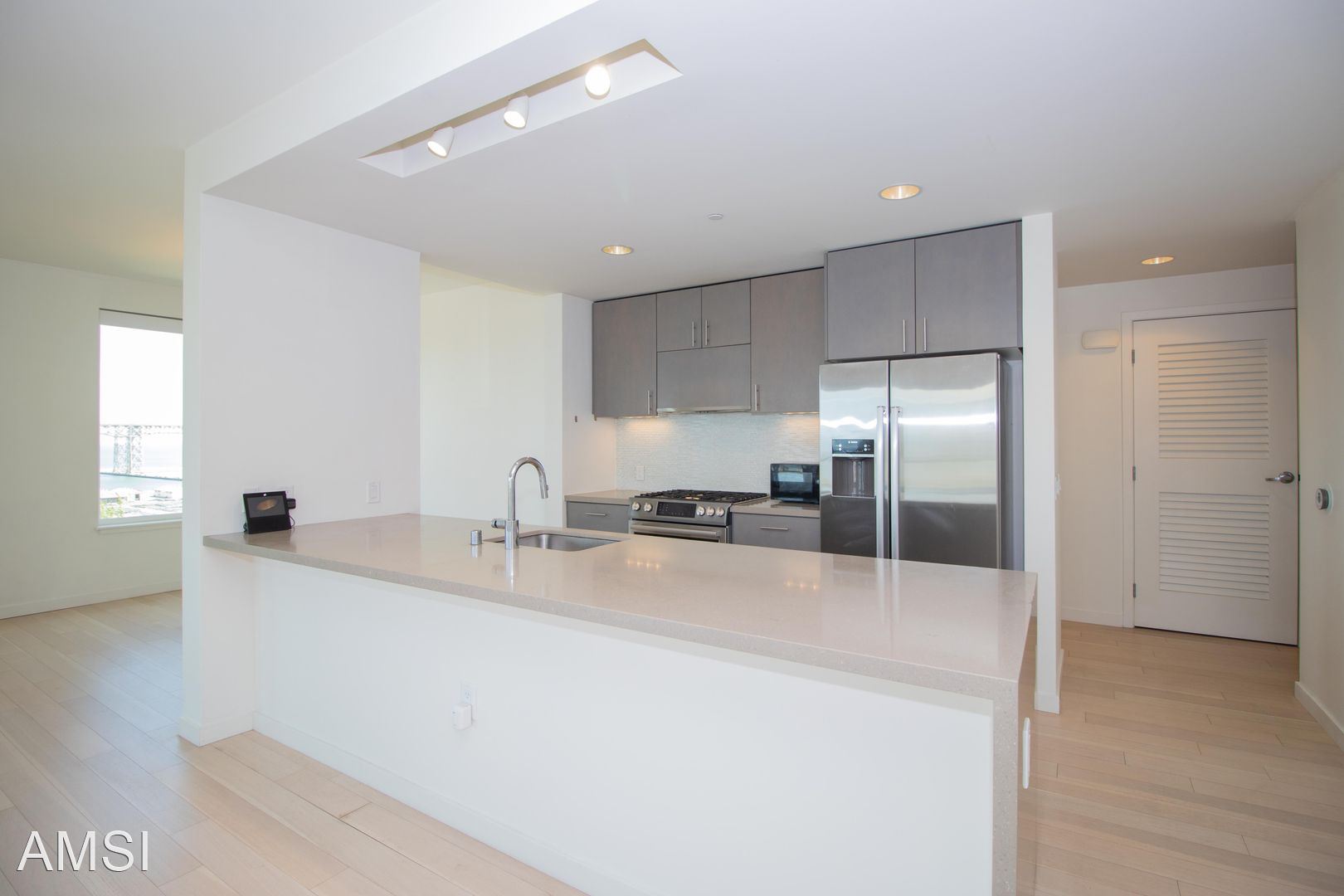 Luxurious 2BD/2BTH w/ Parking and Amazing Views | AMSI | Alexandr Metlinski - Spacious condo with large windows allowing for lots of natural light. The kitchen has Caesarstone quartz countertops, a glass mosaic backsplash, modern cabinetry, and stainless steel Bosch appliances. Condo comes with a full home automation package including an Amazon Show & Amazon Dot, Sonos Speaker, Lutron wireless roller shades & wireless dimmers, Honeywell Lyric Thermostat, SmartThings Hub that can all be controlled through your voice or smartphone. Parking included and Pet friendly! Features: Washer/Dryer Dishwasher Fridge Gas Stove/Oven Hardwood Floors Carpeted Bedrooms Wrap-around Balcony Alexandr Metlinski AMSI / Leasing / Property Management 415-702-7824 ametlinski@amsiemail.com DRE # 02043065