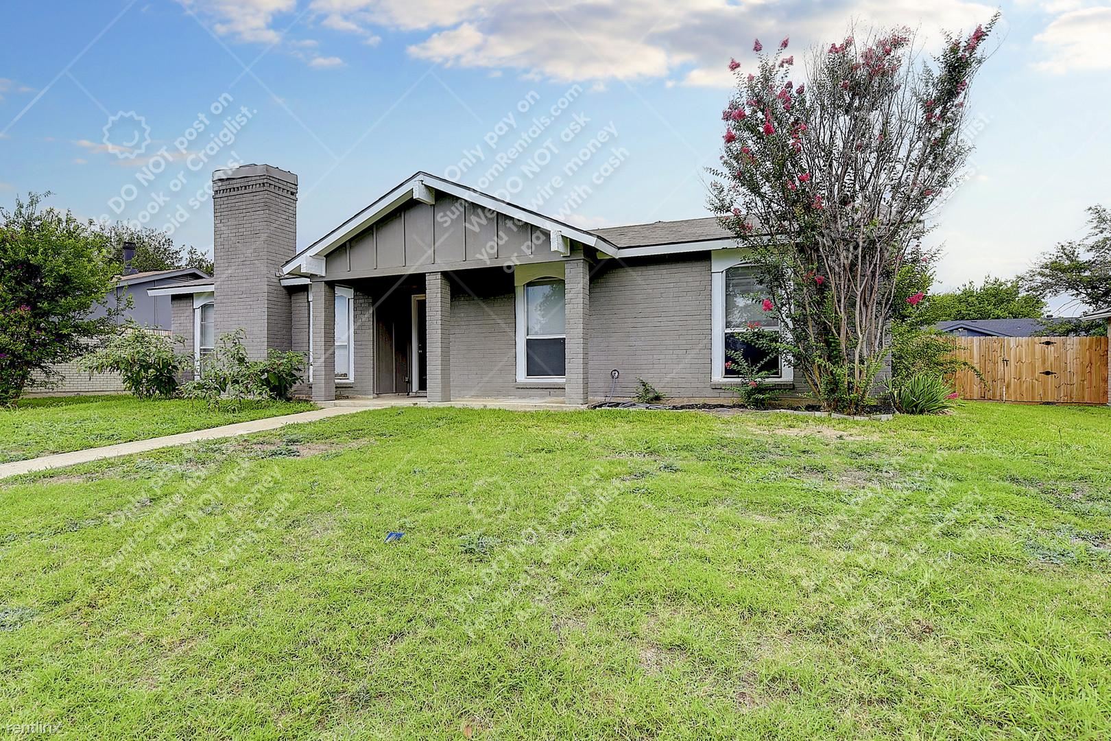 Welcome to 1217 Oakbluff Dr, a stunning 3 bedroom, 2 bathroom house available for rent in Lancaster, TX. This charming property boasts a large front and backyard, perfect for outdoor recreation and entertaining guests. With 1,441 sqft of living space, a two-car garage, and upgrades throughout, this home provides the perfect blend of comfort and style! Open the door to beautiful hardwood floors, fresh neutral paint, and large bright windows! This open, yet traditional floorplan is functional and perfect for entertaining. The formal dining room and spacious living area provide ample space for hosting dinners and gatherings. The white brick fireplace and modern wooden mantel bring so much charm to the living room! The L-shaped kitchen offers plenty of counter space and cabinet storage, with white chic cabinets, modern fixtures, and stainless steel appliances! All bedrooms are generously sized with spacious closets and updated bathrooms! Enjoy relaxing in your large sunroom, with easy access to the fenced backyard– the perfect spot for morning coffee or evening cocktails. Don't miss your chance to call this lovely house your new home!
